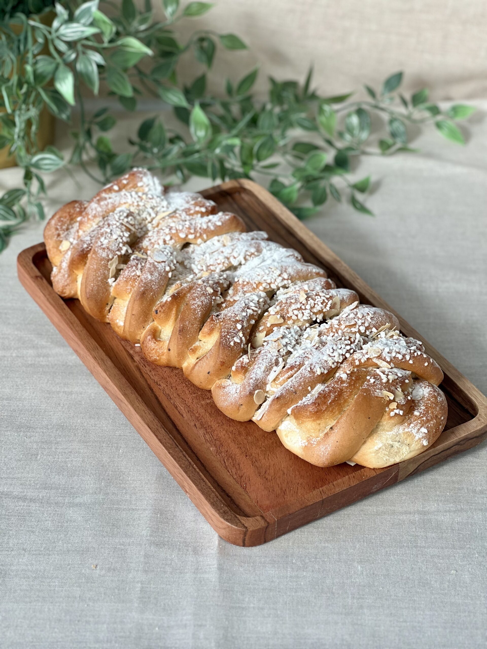 Vehnäjauho, kananmuna, sokeri, kasvimargariini (kasviöljy ja rasva, emulointiaine E471, happamuudensäätöaine E270) hiiva, suola, leivänparanne (vehnägluteeni, vehnäjauho, emulgointiaine E472e, vehnämallasjauho), kardemumma
