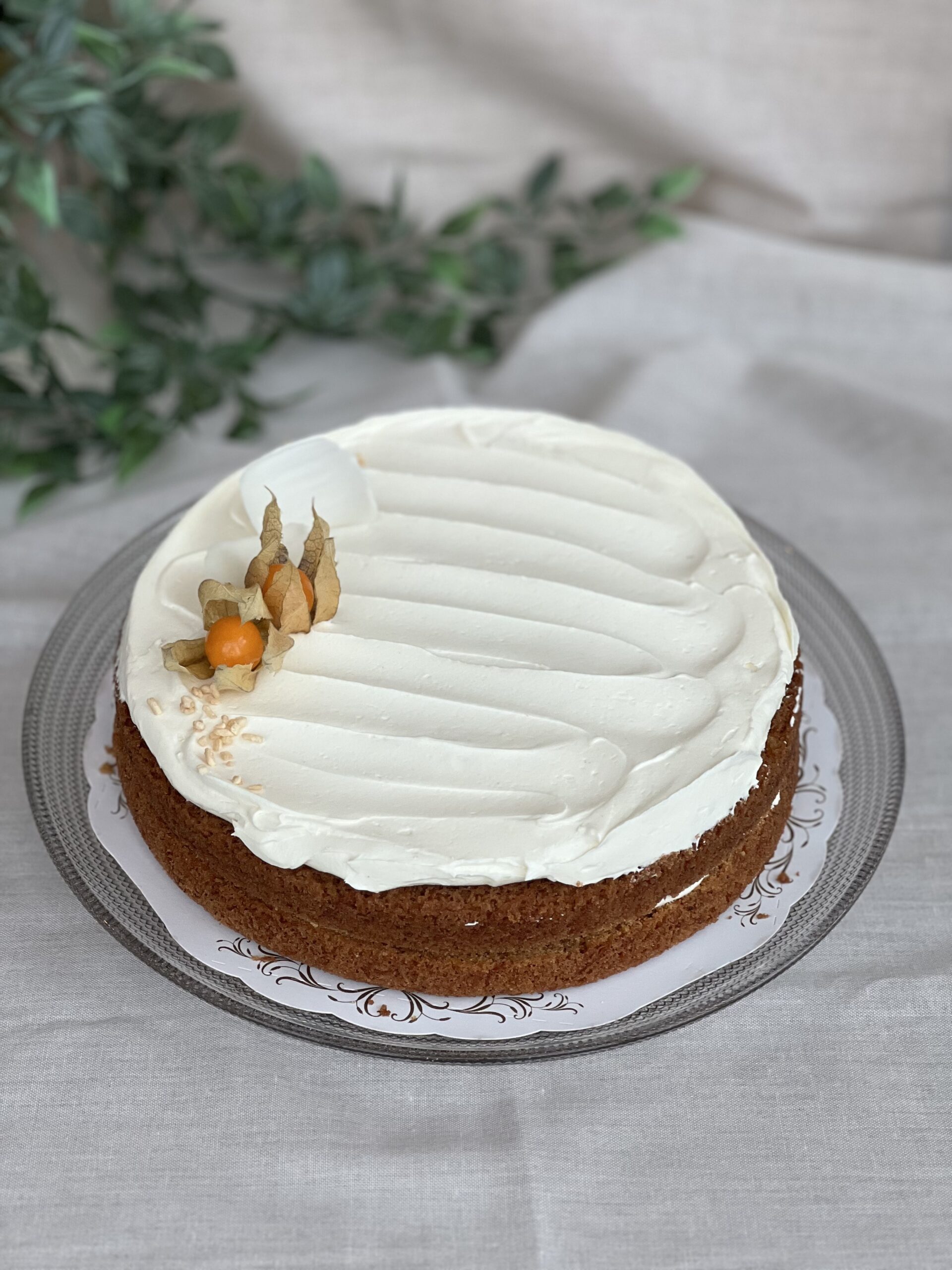 Sokeri, vehnäjauho, porkkanaraaste, kasvimargariini (kasvirasva (palmu, kookos, rapsi), vesi, suola (1, 3 %), emulgointiaineet (E471, E322) happamuudensäätöaine E330, aromi, A-vitamiini, D-vitamiini), kananmuna, leivinjauhe, kaneli, sooda.